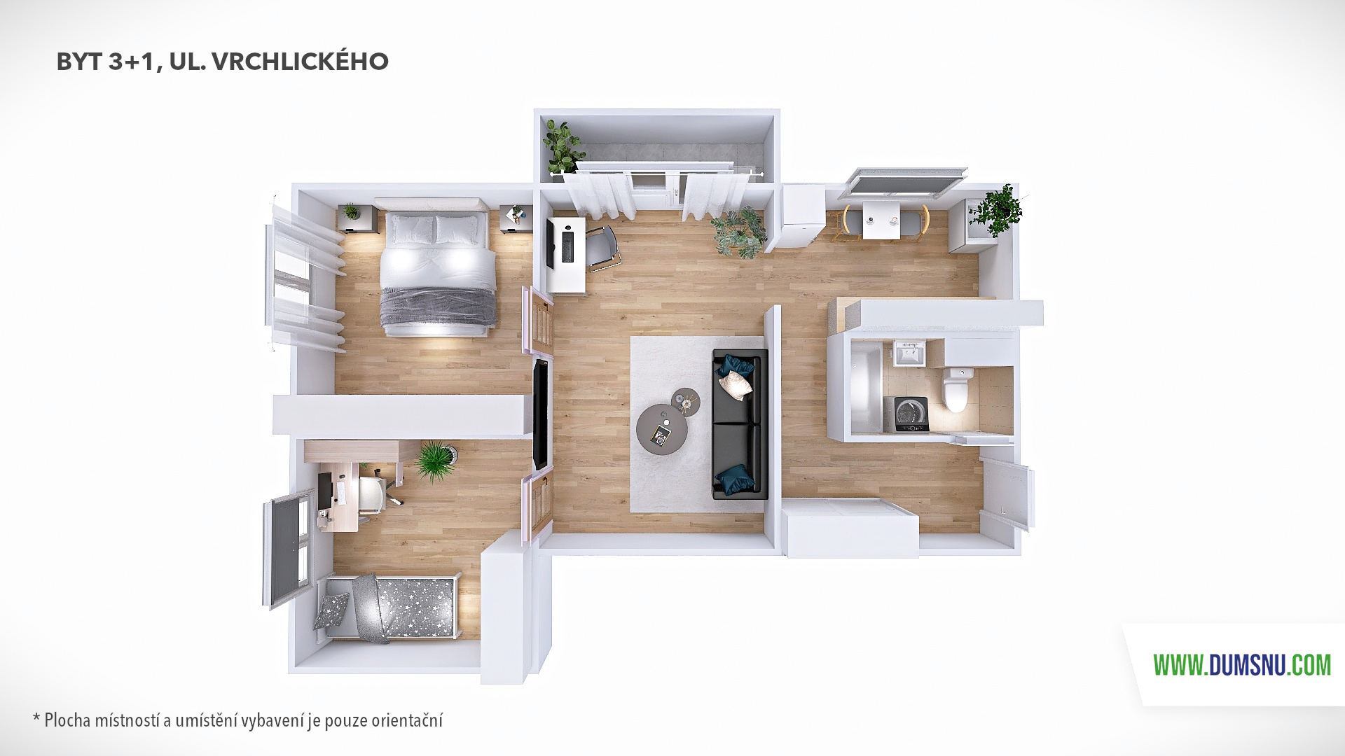 PRONÁJEM zrekonstruovaného bytu 3+1 se zasklenou lodžií, 62 m2, Vrchlického, Šumperk